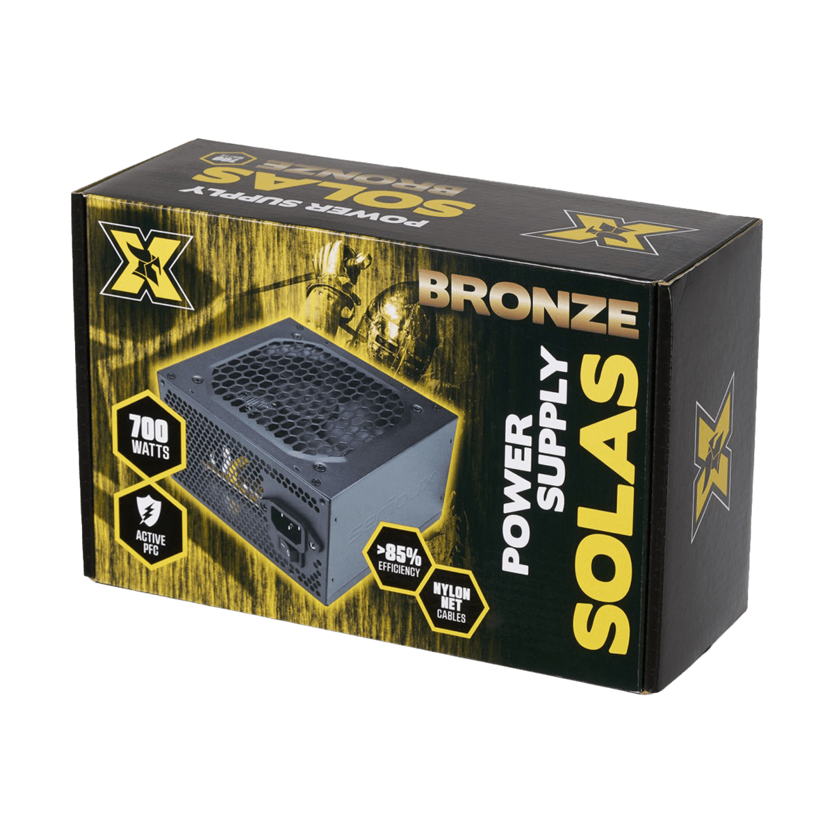 | Power: 700W Input voltage: 230V FAN: 12cm with thermal control PFC: Active Certification: 80+ Bronze Efficiency: >85% Protections: OCP/OVP/UVP/SCP/OPP Connectors & nylon net cables : 20+4 Pin (500mm); 2x HDD (450mm) 4x SATA (150mm); 4+4P (CPU) (550mm); 6+2P(PCI-E)(480mm)+6+2Pin(150mm) Black case 1.2m EU plug |