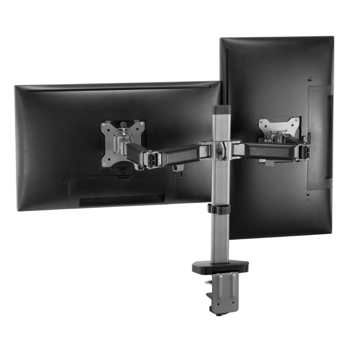| Compatibilitate dimensiune ecran: 17″-32″ Greutate maximă suportata (per ecran): 9 kg Compatibil VESA: 75×75, 100×100 Inclinare: +70°~-70° Pivotare: +90°~-90° Rotația ecranului: +180°~-180° Instalare: Clemă, Grommet Grosime recomandată pentru birou: clemă: 10~85mm Grommet: 10~40mm Management cabluri: Da |
